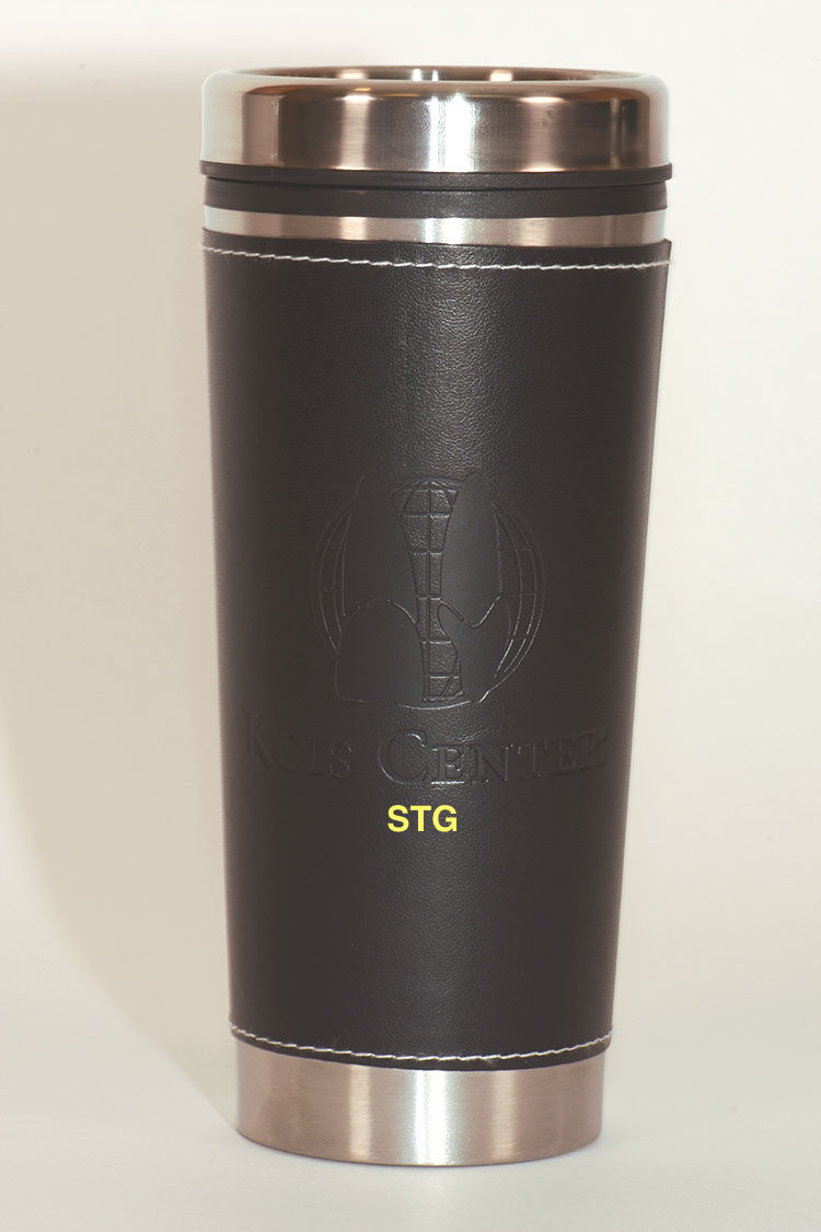 - Deluxe stainless steel tumbler features a bold simulated-leather wrap.